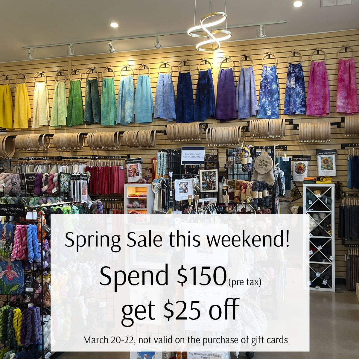We're celebrating the beginning of Spring at Loopy Wool! This weekend only (Friday to Sunday), enjoy $25 off when you spend $150 (pre tax). Valid in studio or online.